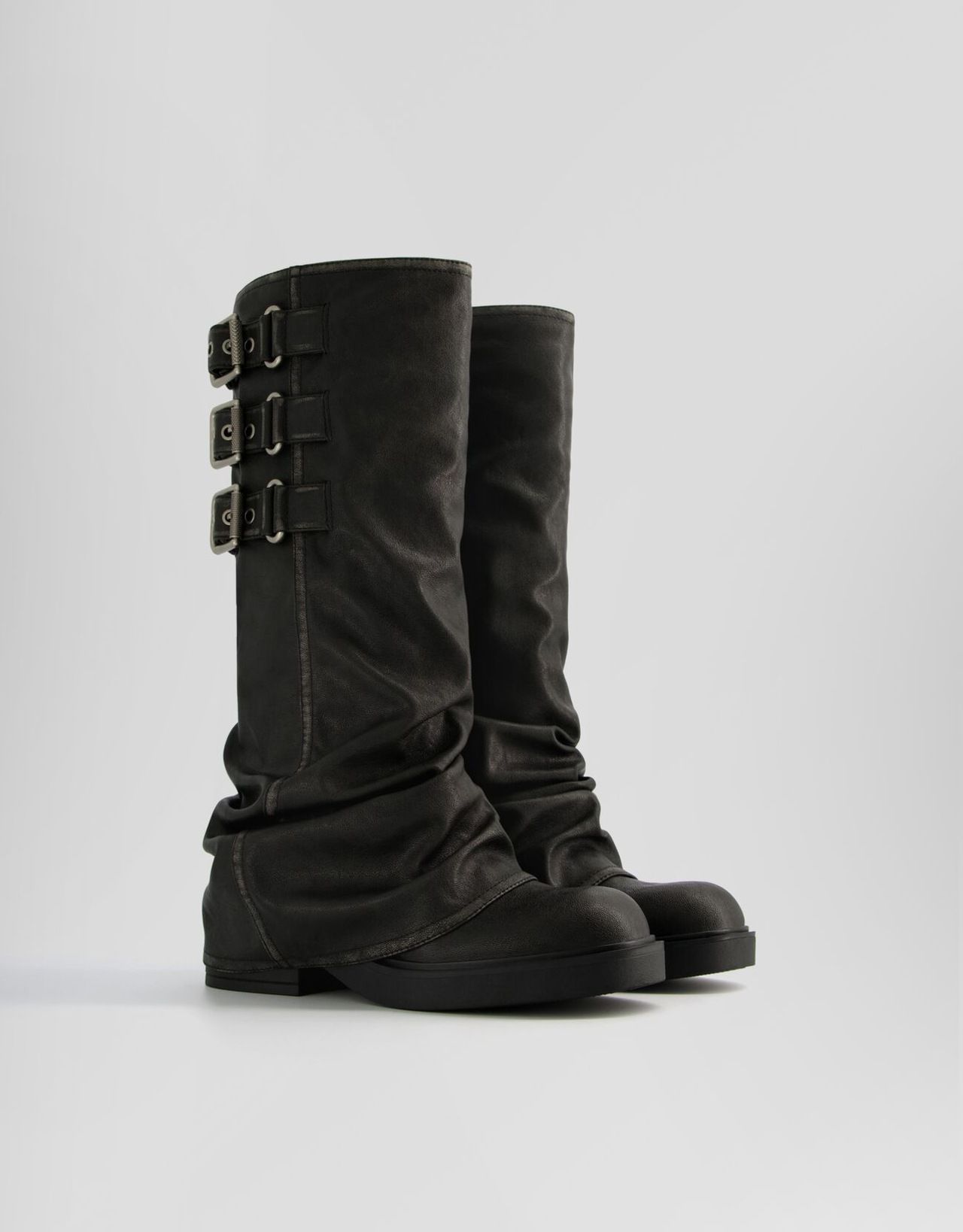 버쉬카 플랫 슬루시 버클 바이커 부츠 1056/360 BLACK