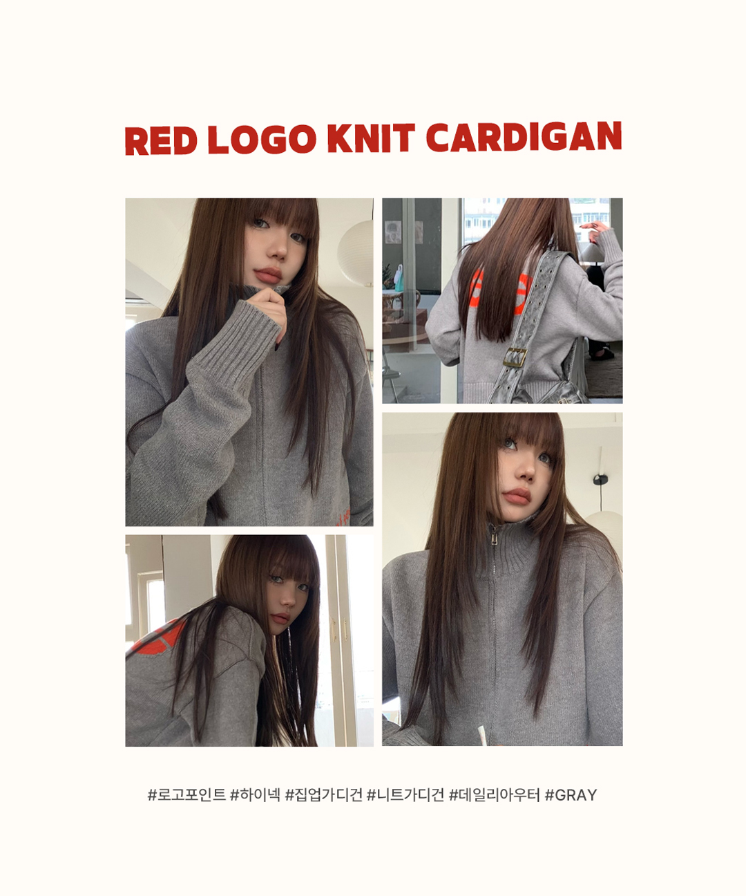 *가을신상* [힙해힙해😎] 레드 백 로고 하이넥 집업 니트 가디건 스웨터 데일리 캐주얼 아우터 Z-SSC 3158