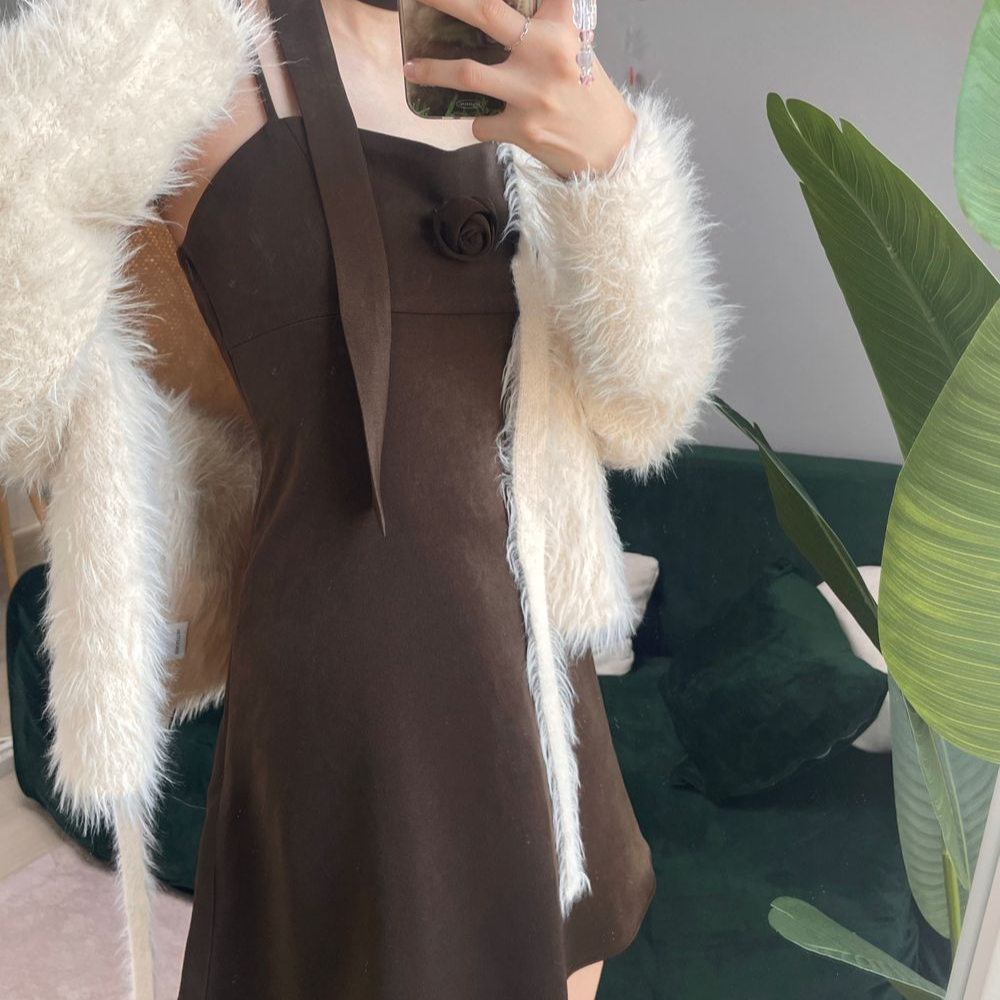 [마지막수량/당일발송] 로즈 뷔스티에 미니 원피스(3color) 머플러 스카프 세트 나시 코사지 연말 A라인 에이라인