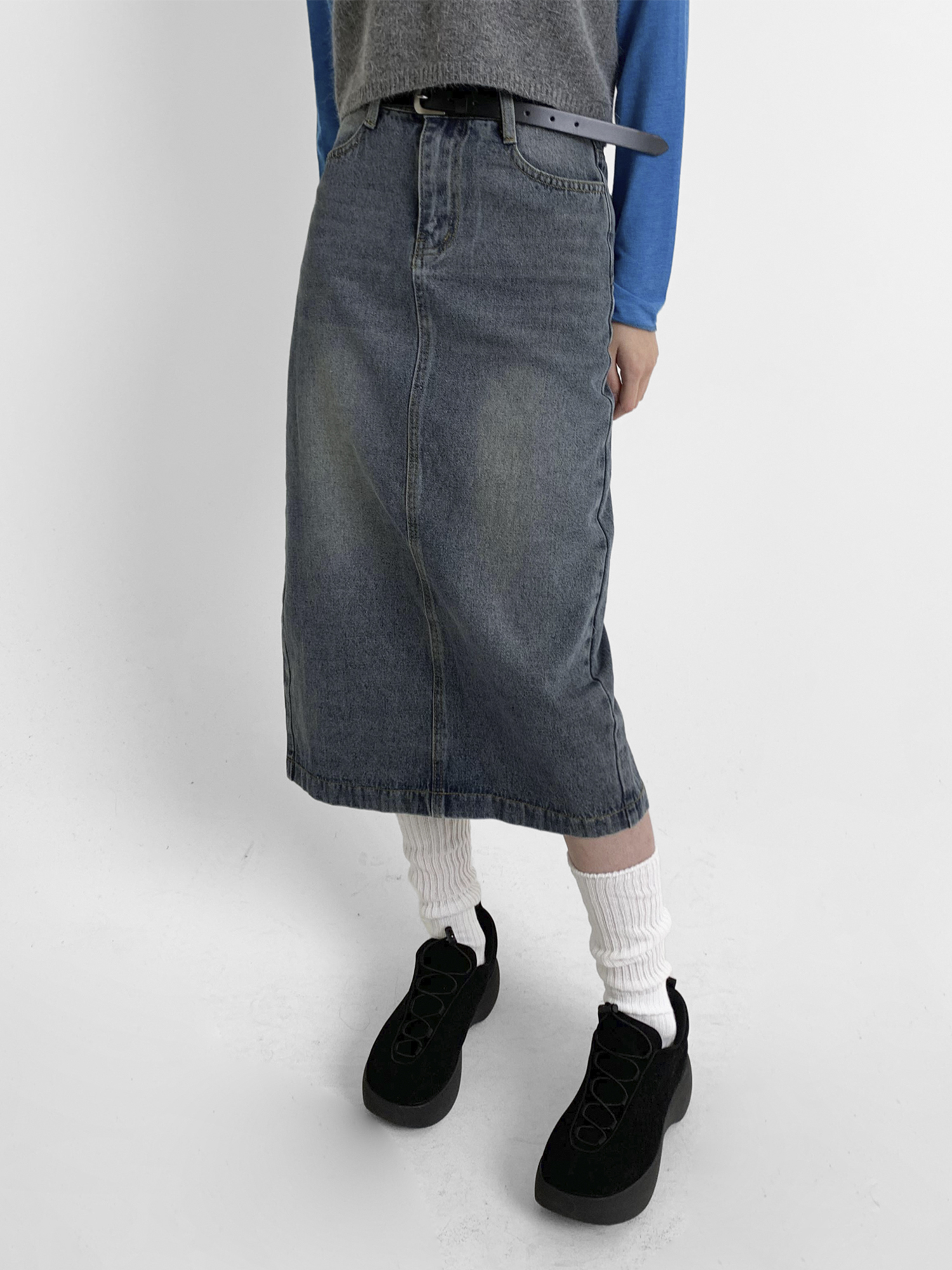 카롬 데님 롱스커트