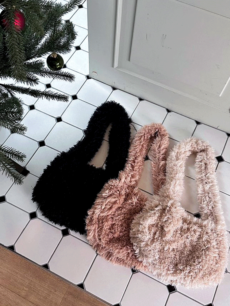 퐁퐁 퍼 뽀글이 털 밴딩 숄더 크로스 백