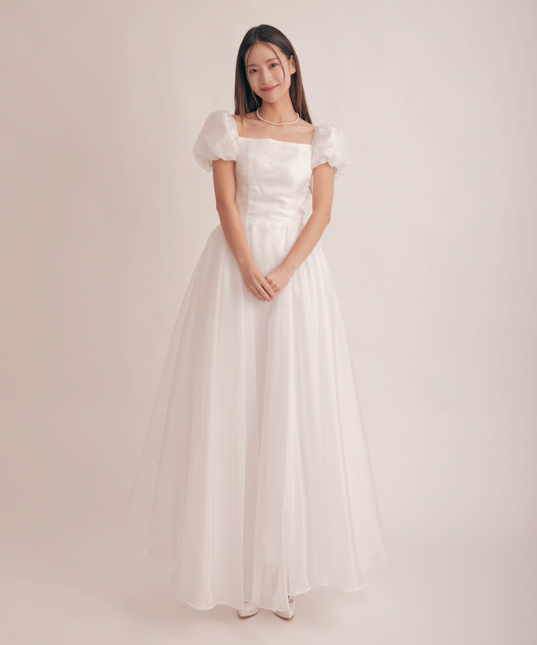 블랑코 셀프웨딩 야외촬영드레스 이브닝 결혼식2부 연주복 오간자 퍼프소매 피로연드레스 LDP93
