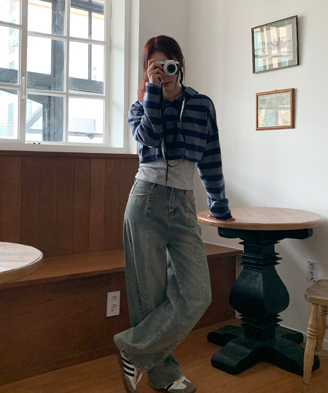 데하 빈티지 워싱 커브 절개 와이드 데님 팬츠(M,L,XL)