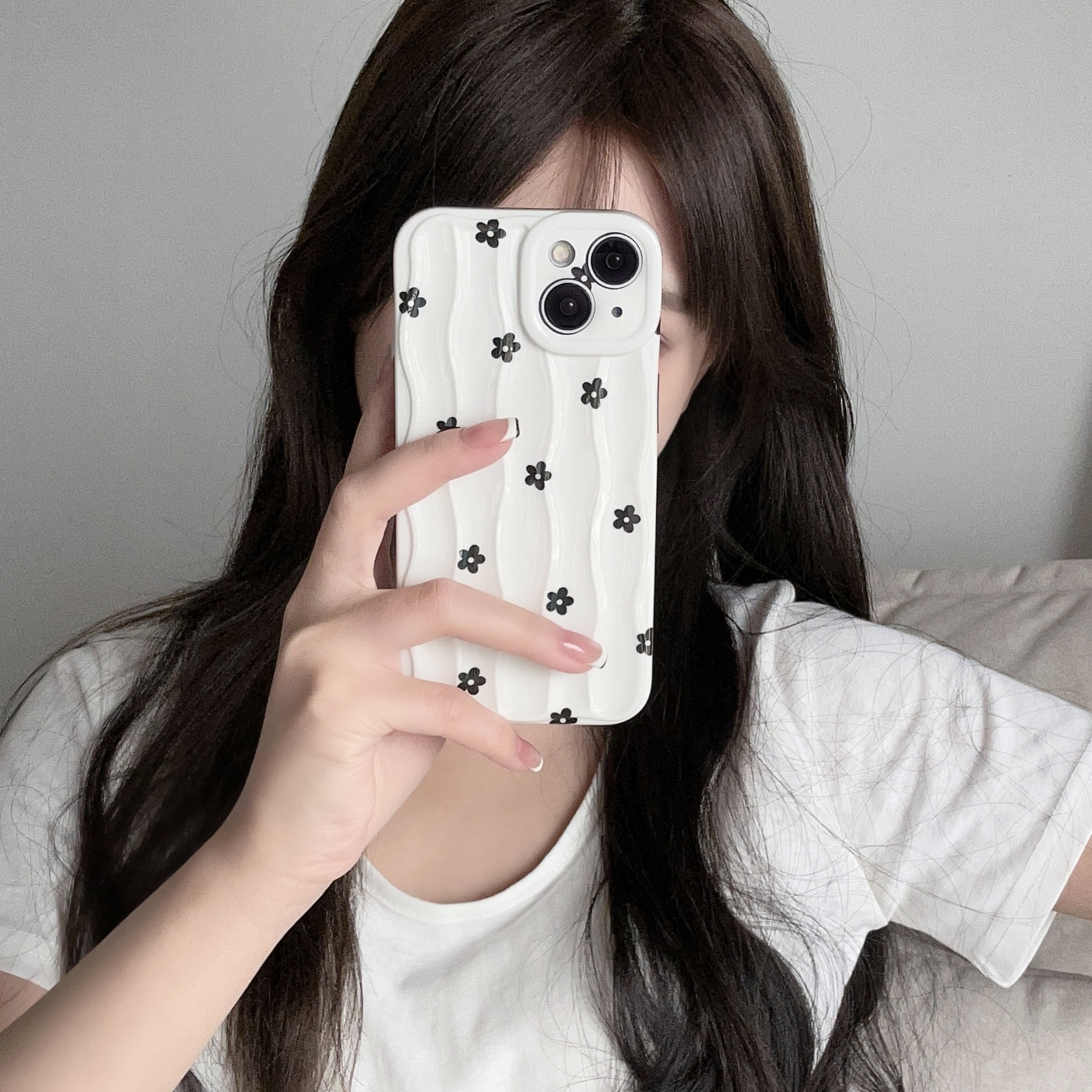 🤍16입고🤍화이트 웨이브 미니 플라워 아이폰케이스 [12 13 14 15 프로 키치 청순 감성 인스타 선물 우정 심플]