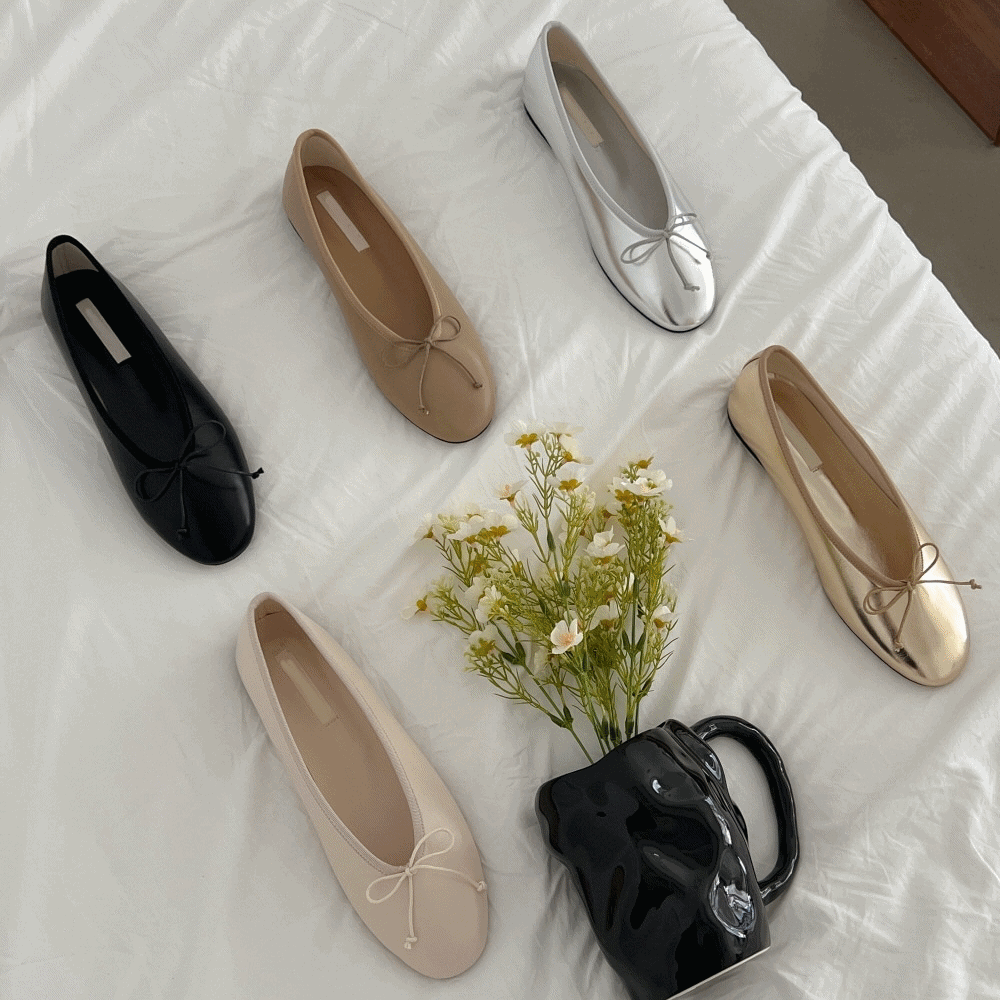 봄신상 발레코어 실버 플랫 슈즈 발편한 발레리나 웨딩 리본 플랫 단화 구두