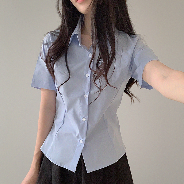 (구김 적은👔) 반팔VER 적당한 크롭 기장감 카라 슬림핏 기본 이너 허리 핀턱 와이셔츠 남방 흰셔츠 소라 긱시크 출근룩 면접 휴양지룩