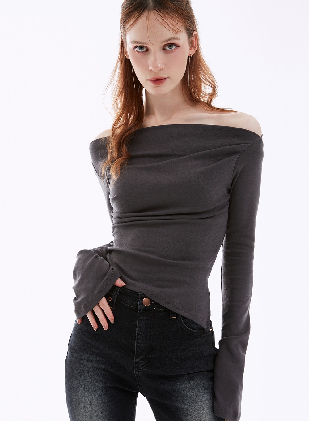 [6천장판매] 로바 오프숄더 드레이프 긴팔티