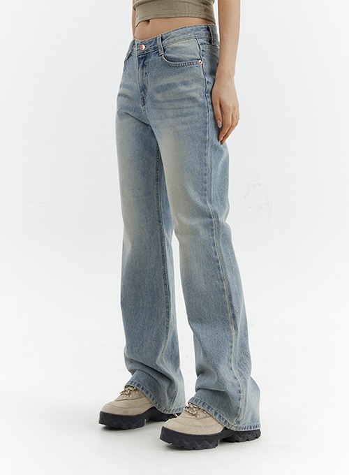 데릭 로우라이즈 부츠컷 워싱 데님팬츠