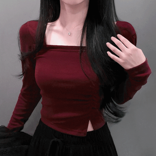 [주문폭주🔥] 인생네컷 보들 스판 베이직 트임 셔링 스퀘어넥 티 데일리룩 4color