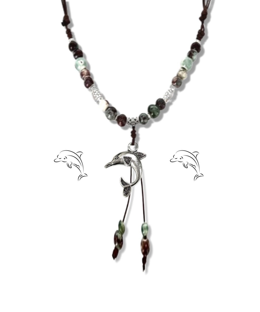 dolphin 돌고래 원석 목걸이 끈 가죽 매듭 빈티지 히피