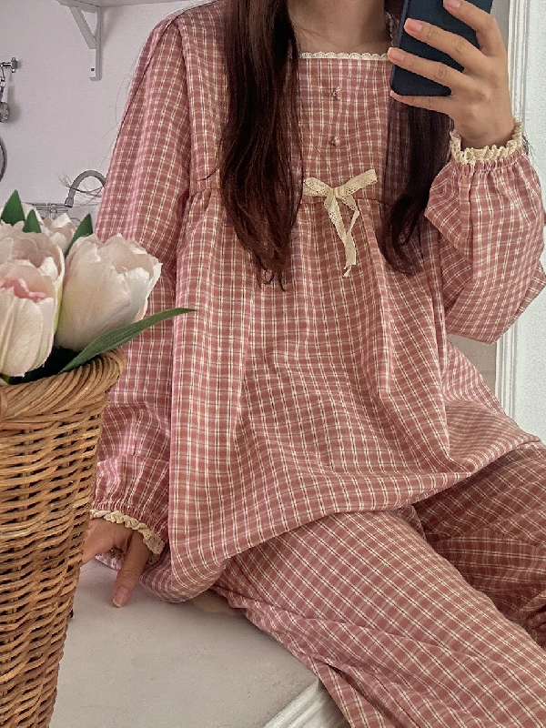 🌟천장돌파🔥 H.made✔ 레이나 체크 긴팔 원피스 투피스 파자마 세트 2type 2color 직진배송