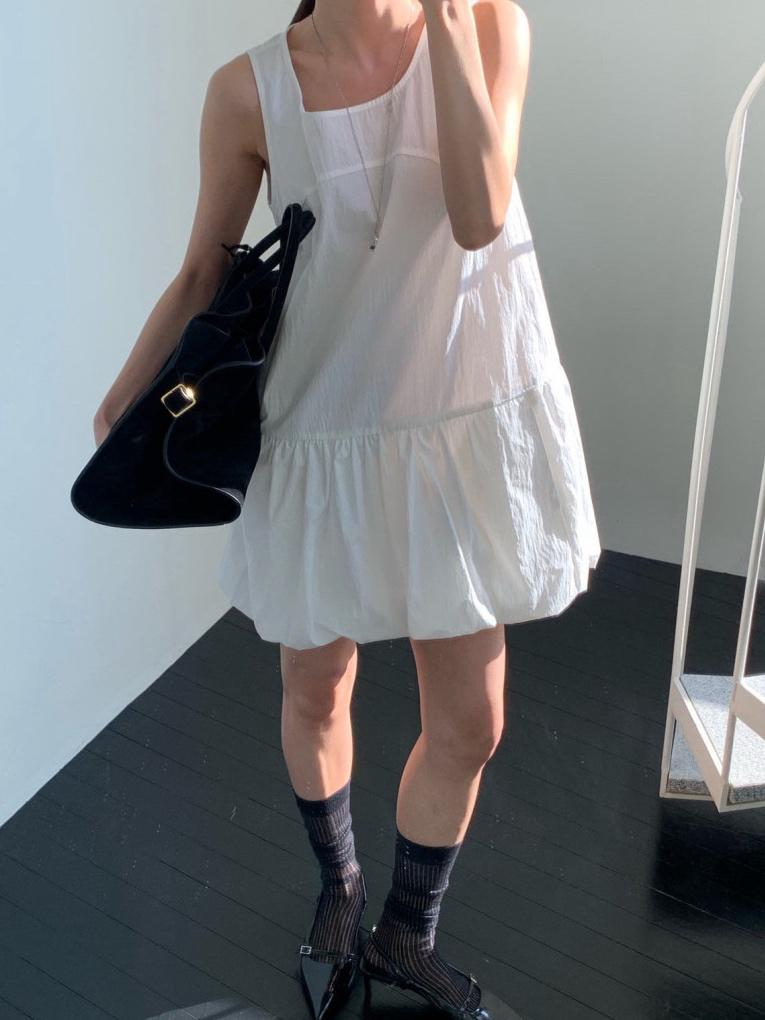 [아이보리/당일] 루아므 미트미 피넛 벌룬 나시 미니 원피스