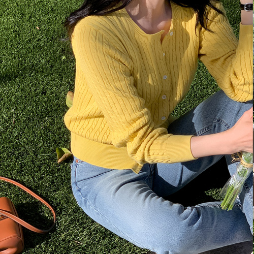[🔥라스트특가60%][MNLB] 클래식 코튼 케이블 라운드넥 크롭 가디건 (S/M) - 오션블루S
