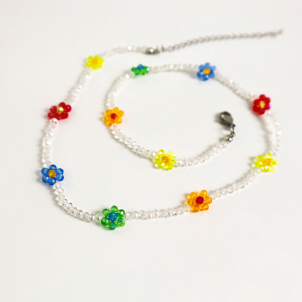 여성 여름 바캉스 레인보우 플라워 비즈 감성 패션 목걸이