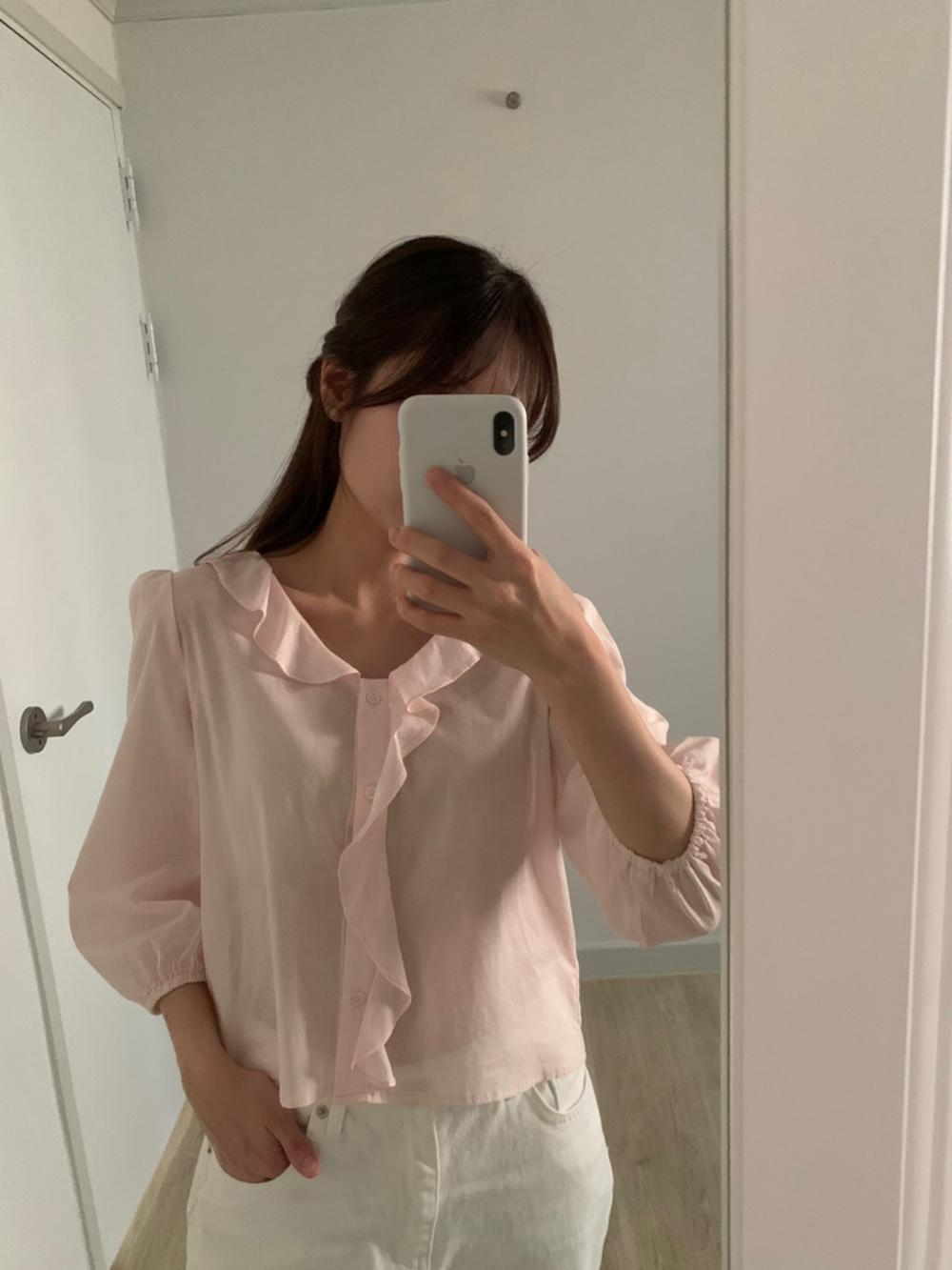 [아이 당일] 피오니 프릴 블라우스 러플 셔링 bl (2color)