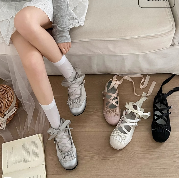 발레코어 리본 스트랩 플랫 슈즈 신발