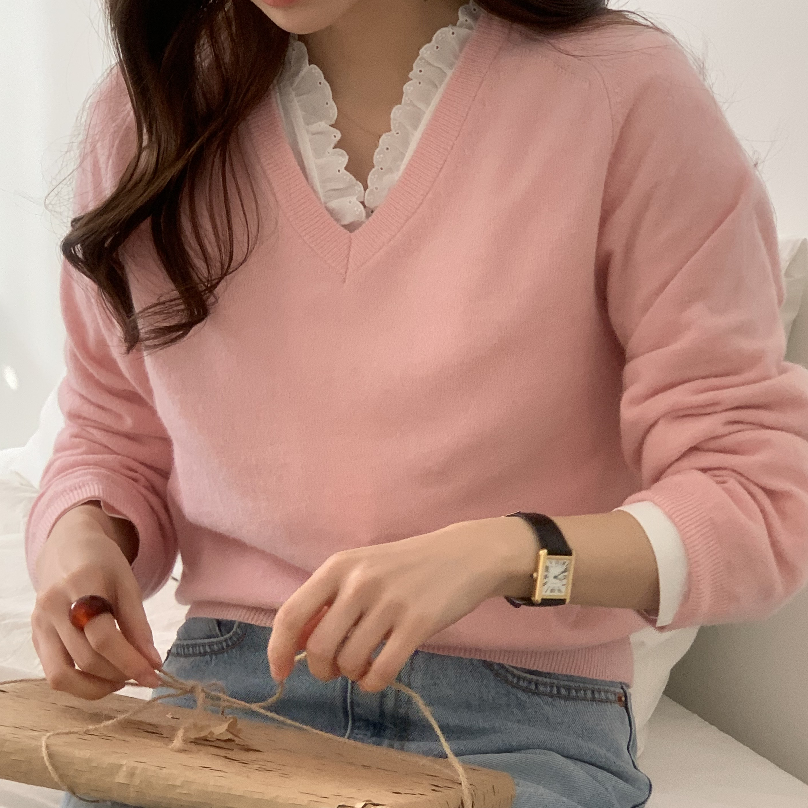 [엘로우당일]컴히얼 멜로디니트 여성 봄니트 루즈핏 얇은 브이넥니트티