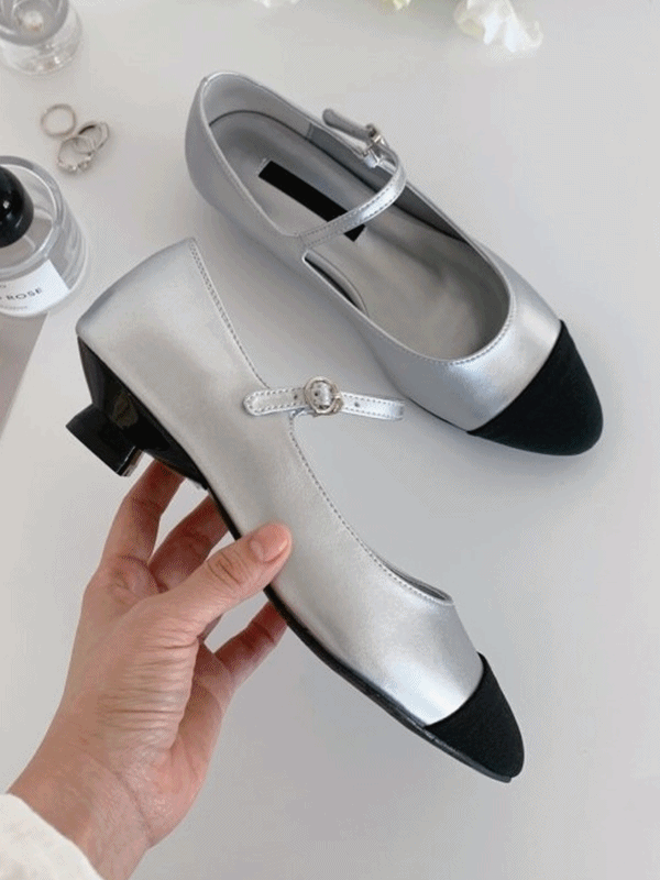 엘레나 배색 메리제인 더블 쿠션 논슬립 실버 3cm 펌프스 힐