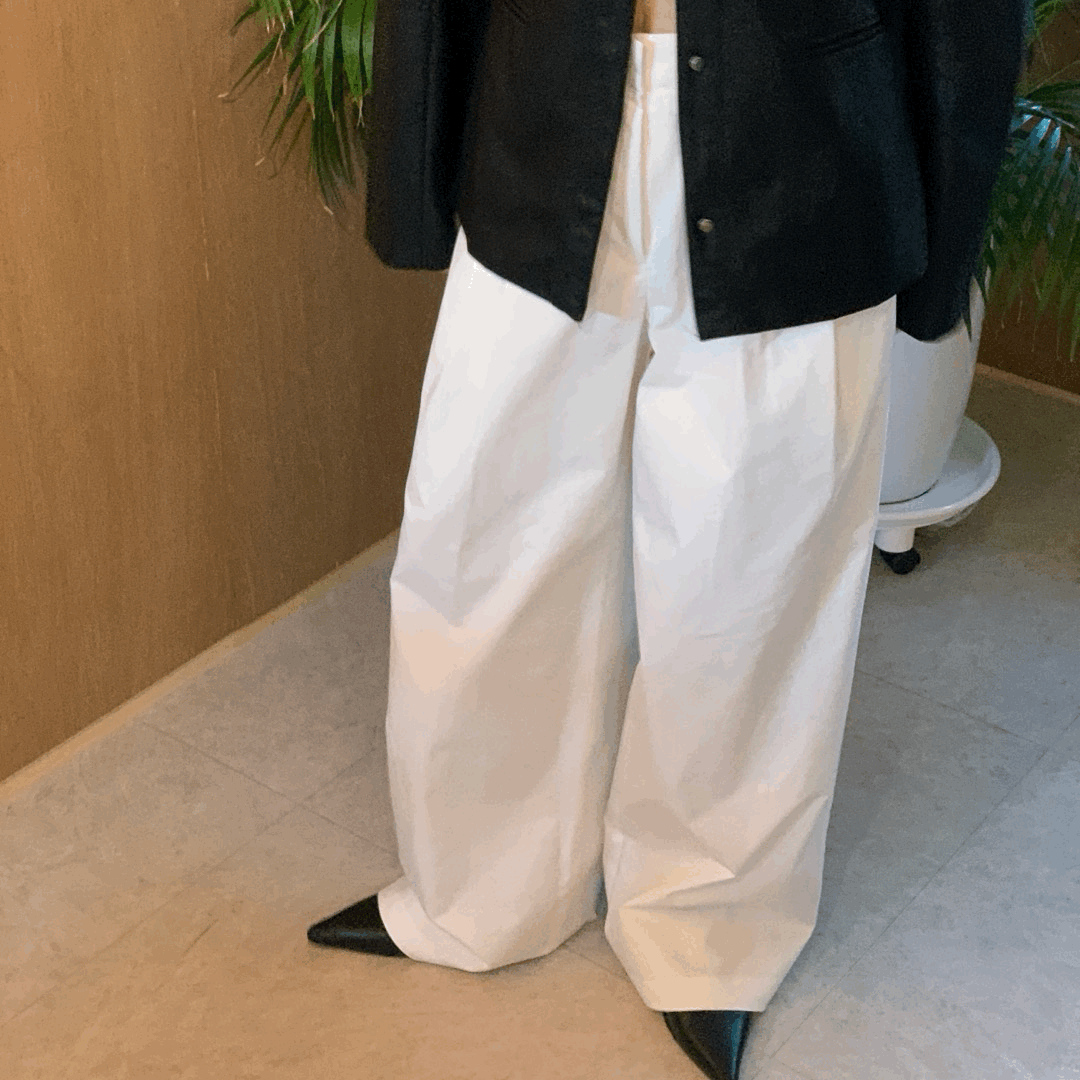 코튼 비조 팬츠 (2 color) 면 와이드 투 버튼 슬랙스 핀턱 화이트 블랙 바지 하객룩