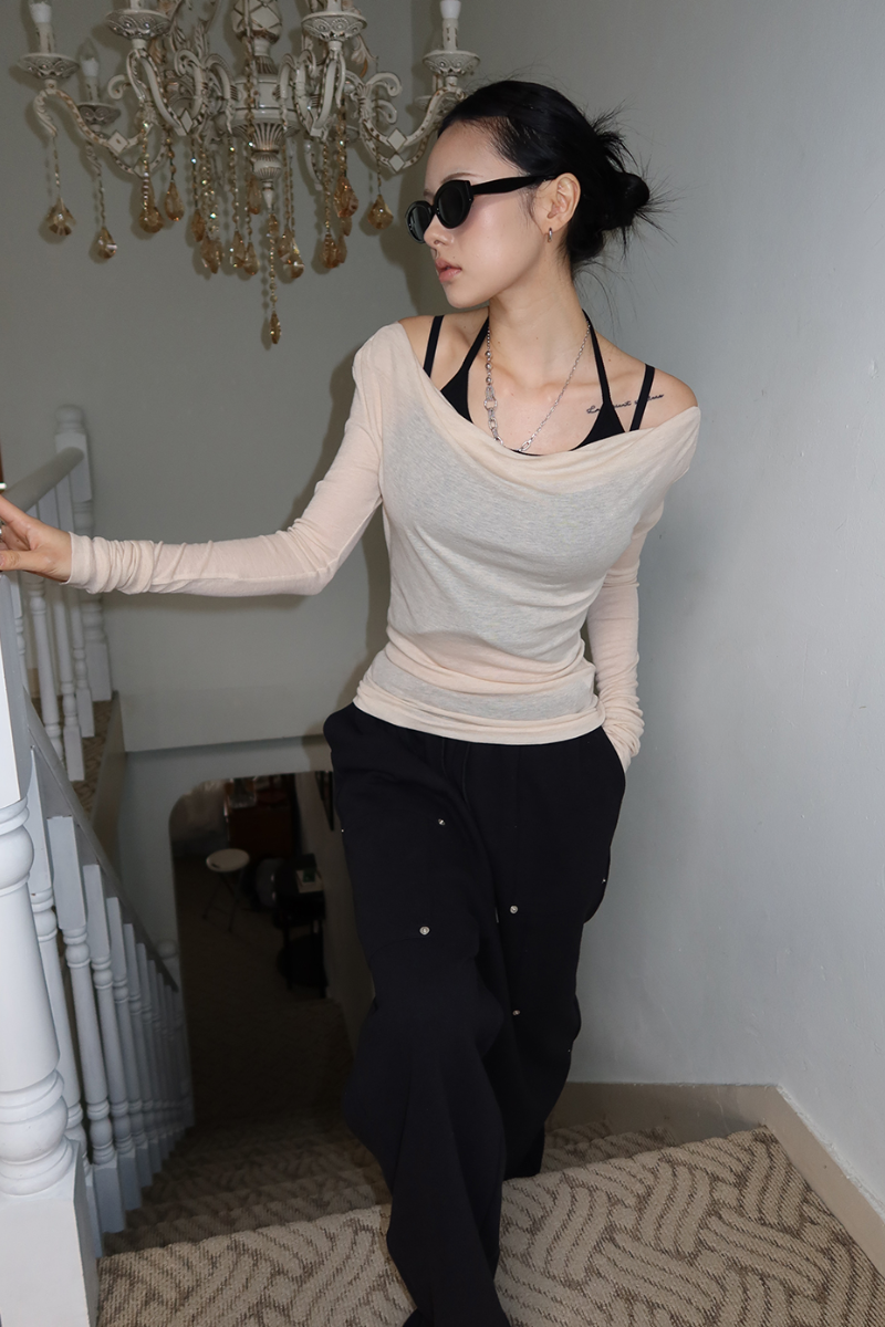 [MD PICK/당일발송] 발레 시스루 셔링 탑