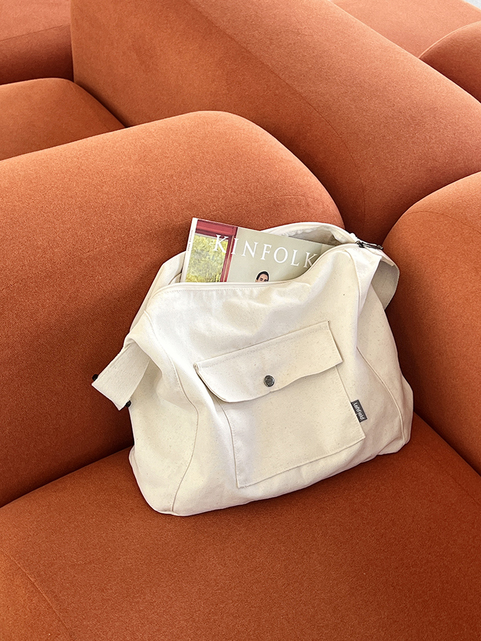 [국내제작] 캔버스 브릿 포켓 지퍼 빅 크로스 에코백 (2color)