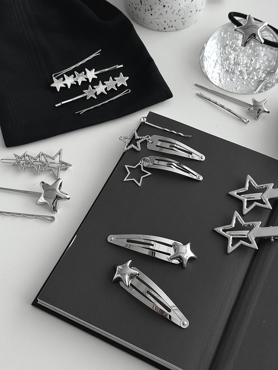 실버 스타 헤어핀 6종 택1 실핀 똑딱핀 세트 앞머리핀 아이돌 머리삔