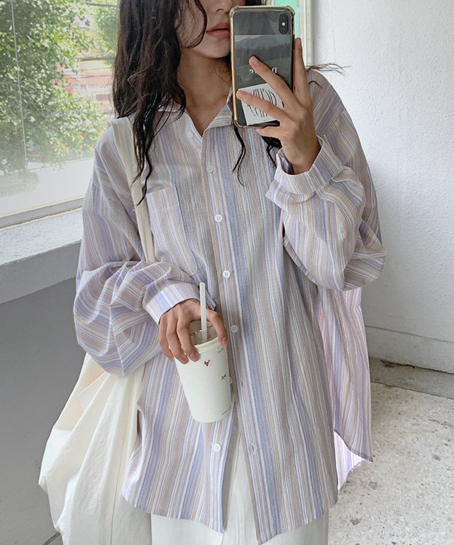 [무료배송] 오브히 스트라이프 포켓 카라 셔츠