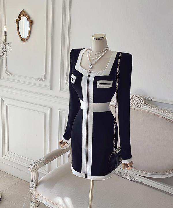 프체 배색 라인 미니원피스 / 프체 배색 라인 미니원피스 / 결혼식 하객룩 행사룩 데이트룩 파티룩 브라이덜샤워 돌잔치원피스 셀프웨딩 웨딩촬영 봄원피스 봄옷 니트원피스
