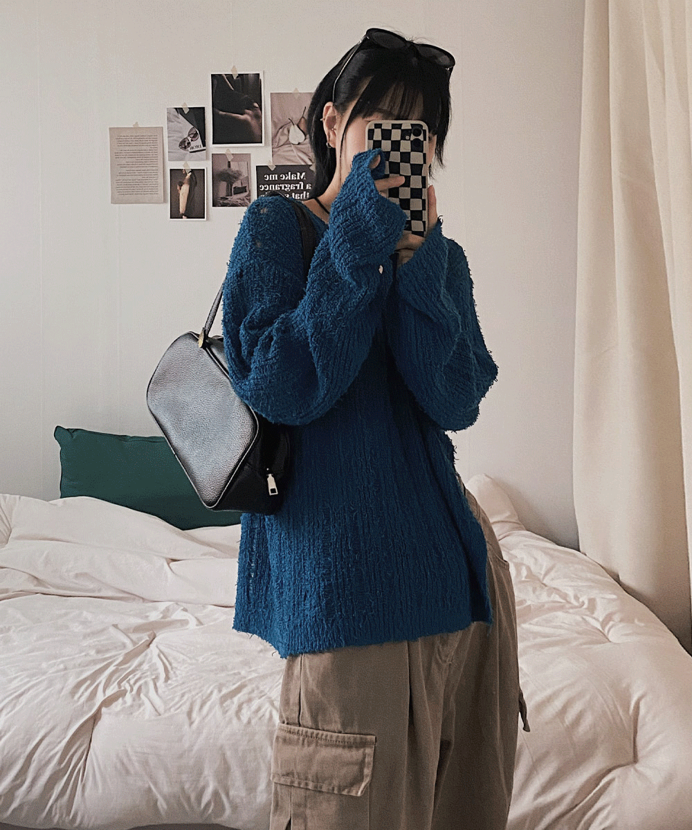 [여리핏] 모코 루즈핏 시스루 니트 - 4 color