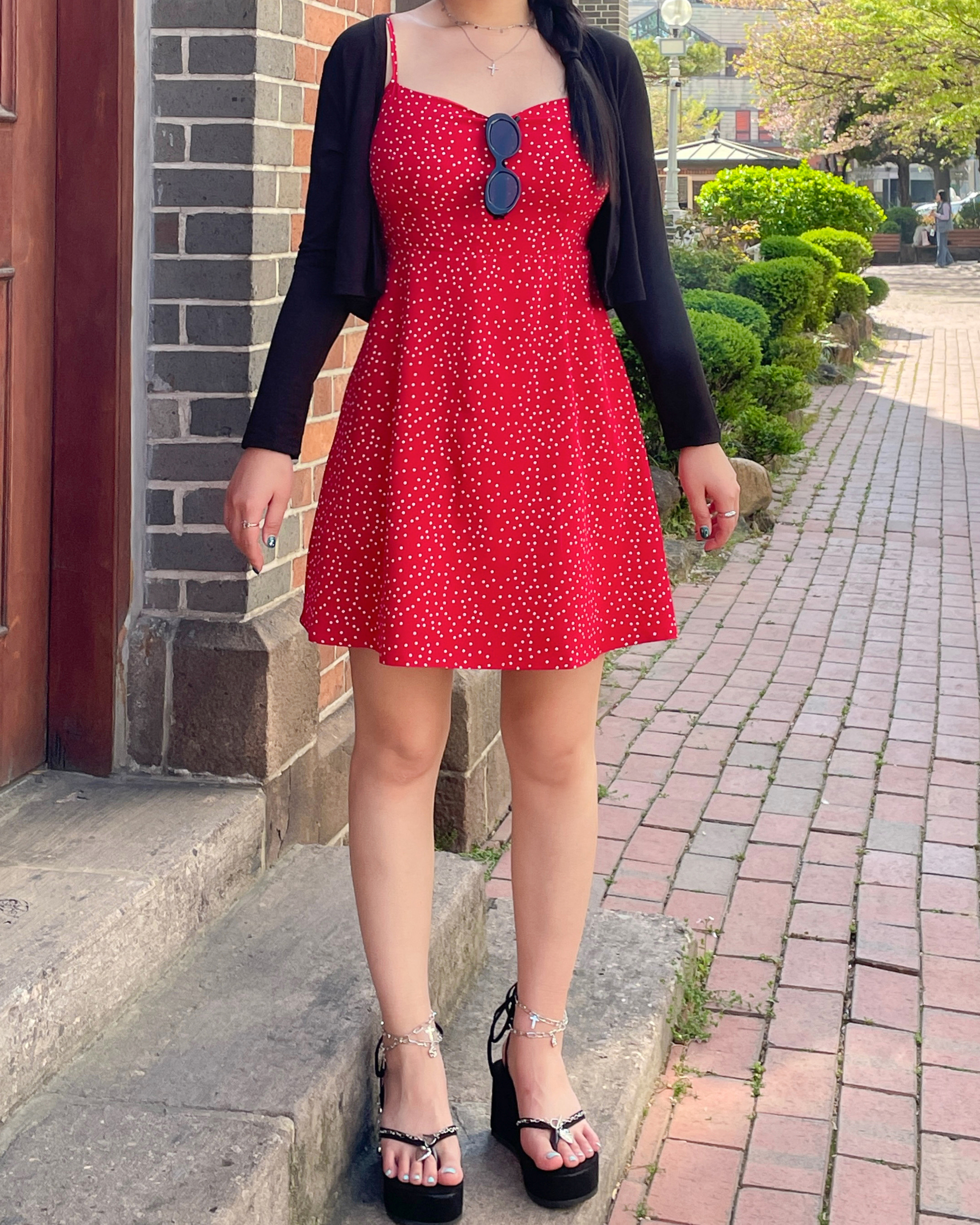 [L-4XL/빅사이즈] 빨간맛 레이어드 나시 스모크밴딩 도트 휴양지 동남아 여행룩 미니원피스