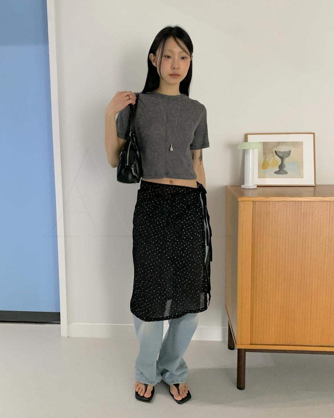 Arr 아르 블루밍 랩 스커트 쉬폰 레이어드 sk 4colors