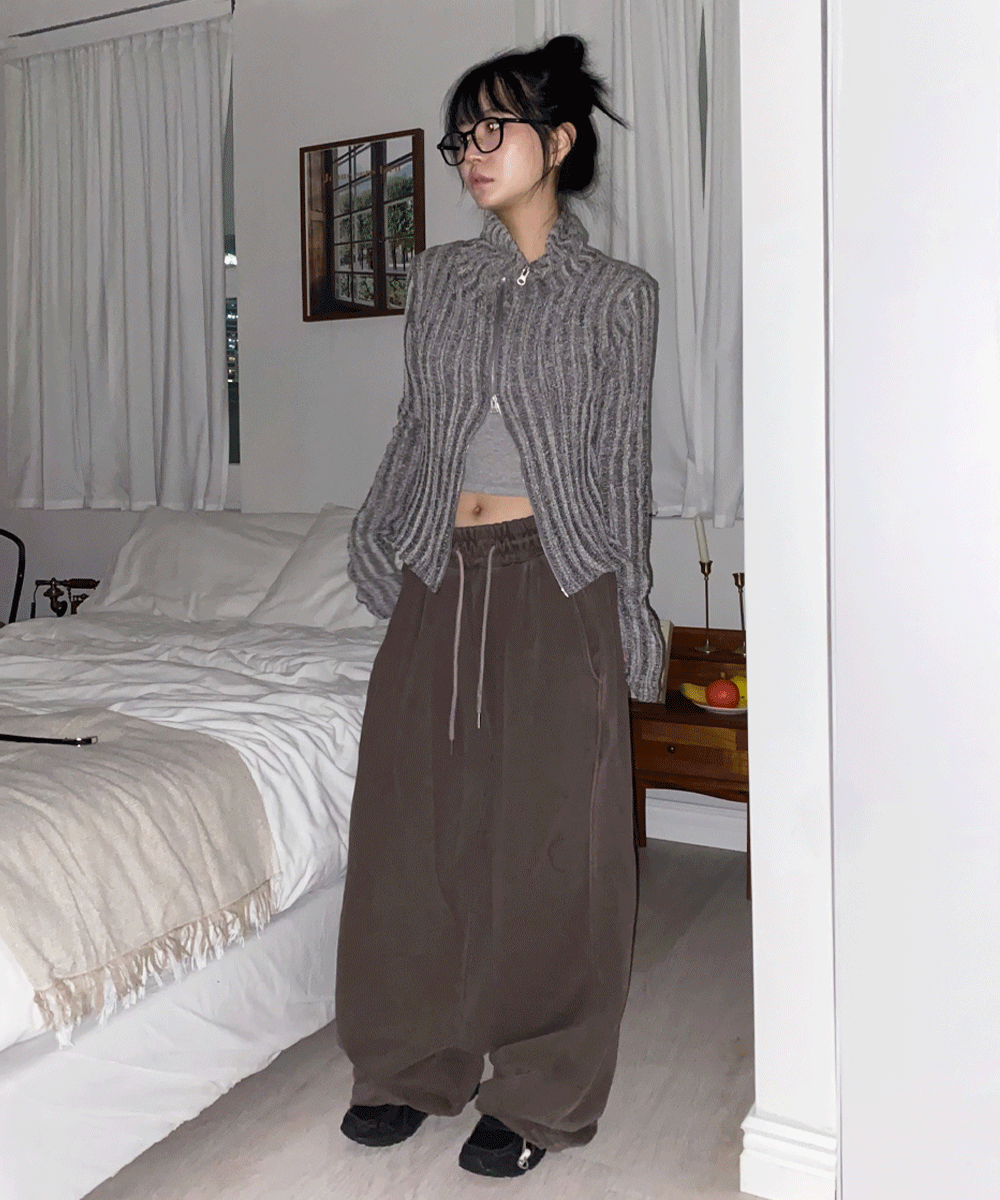 로반 피그먼트 빈티지 스트링 코튼 와이드 트레이닝 조거 밴딩 팬츠 - 5 color