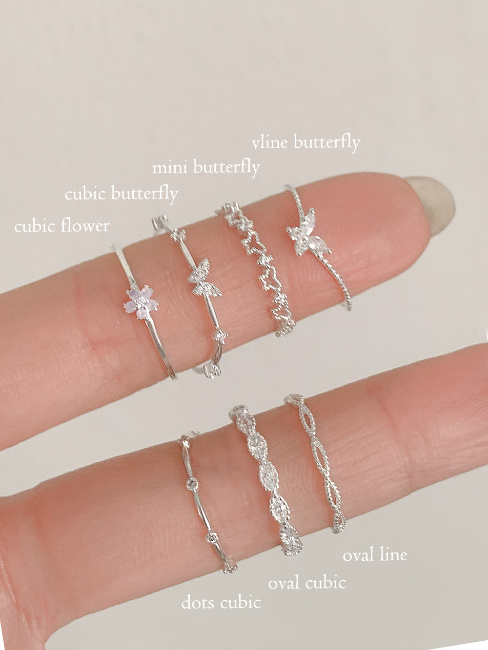 *5호~17호* 925silver 디랑 레이어드 실반지 나비 꽃 반지 모음 (7ypte)