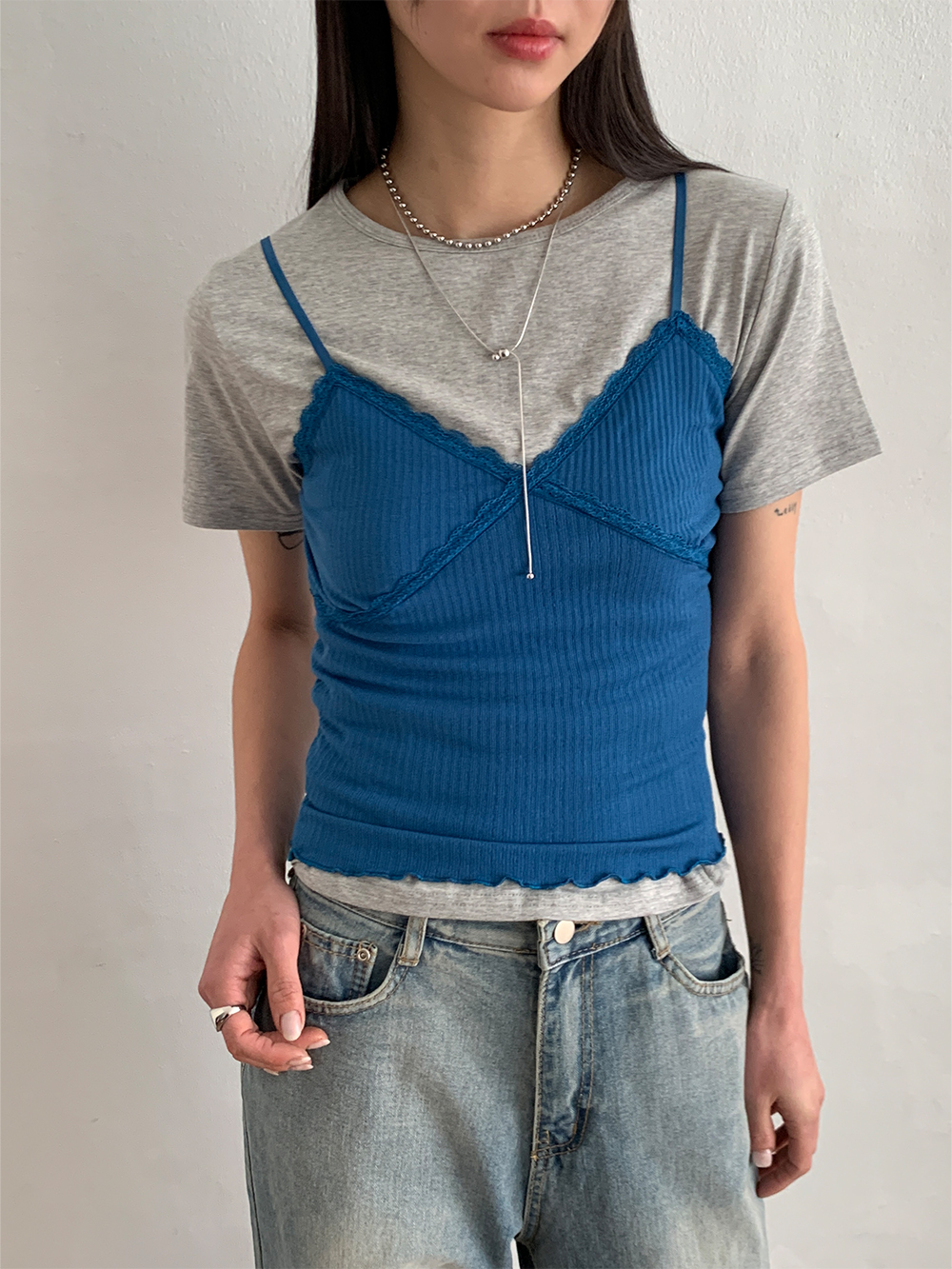 모노 레이스 골지 나시 뷔스티에 민소매 티셔츠