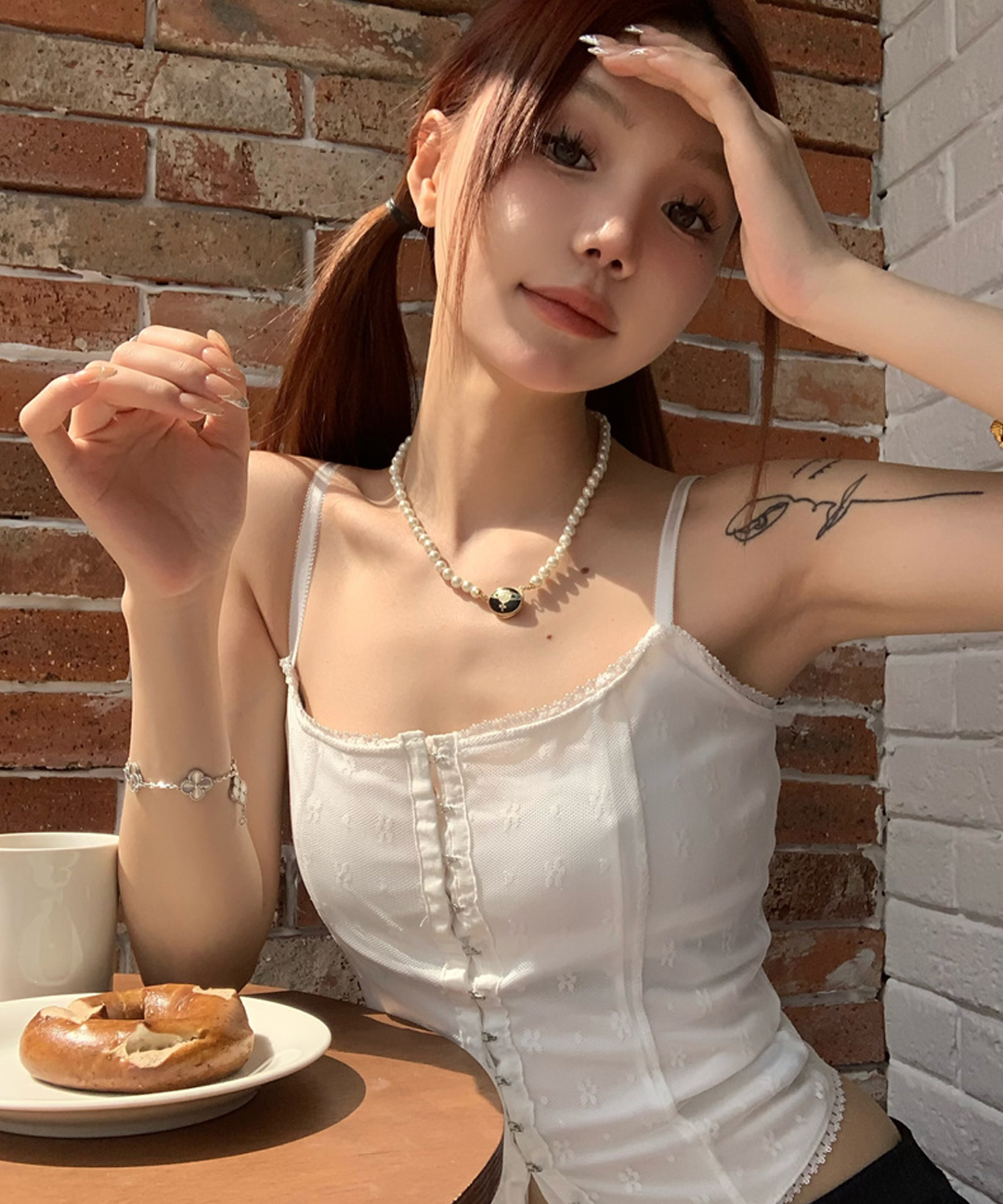 *휴양지룩* 레이스 코르셋 슬림핏 꽃무늬 메쉬 나시 캐미솔 티 탑 Z-SSC 3255