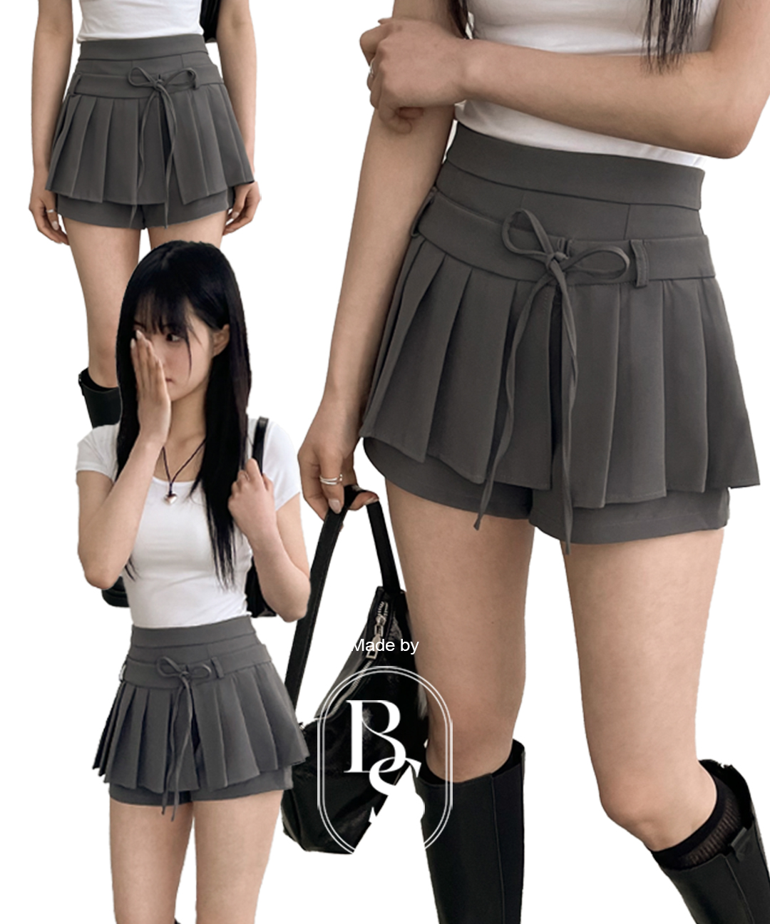 [자체제작] 린트 로우라이즈 리본 플리츠 치마바지