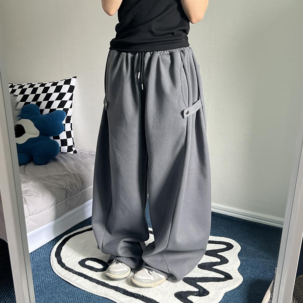 [기모선택/4color] 리카 사이드 스냅 버튼 벌룬 와이드 밴딩 트레이닝 면 바지 (남녀공용)