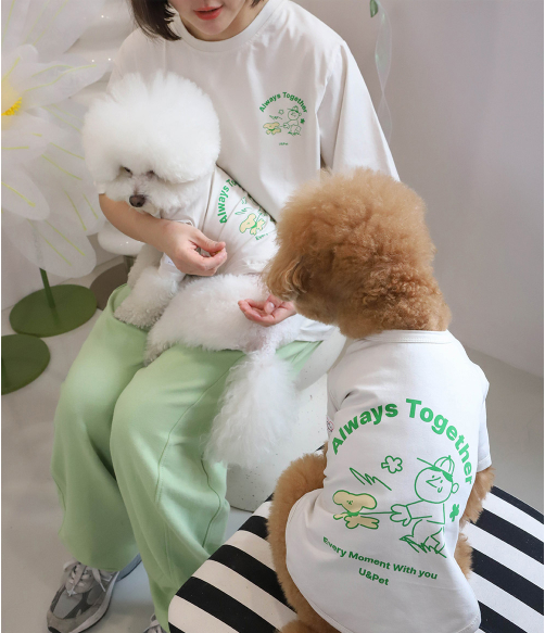 코튼볼 투게더 티셔츠 강아지 커플 견주옷 남녀공용 개플룩 나들이룩 대형견옷 M - 7XL