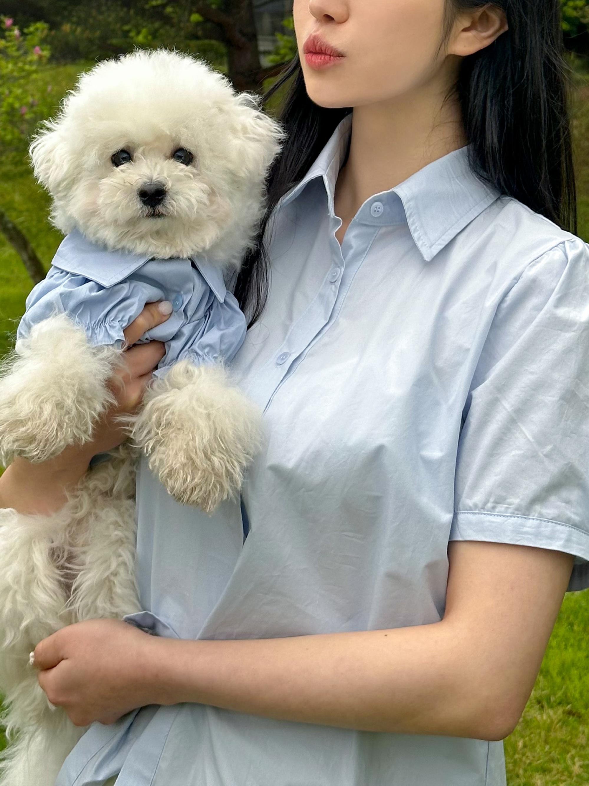 (SET상품)코튼볼 셔츠 블라우스 강아지 시밀러룩 개플룩 커플룩 중대형견옷 S - 3XL