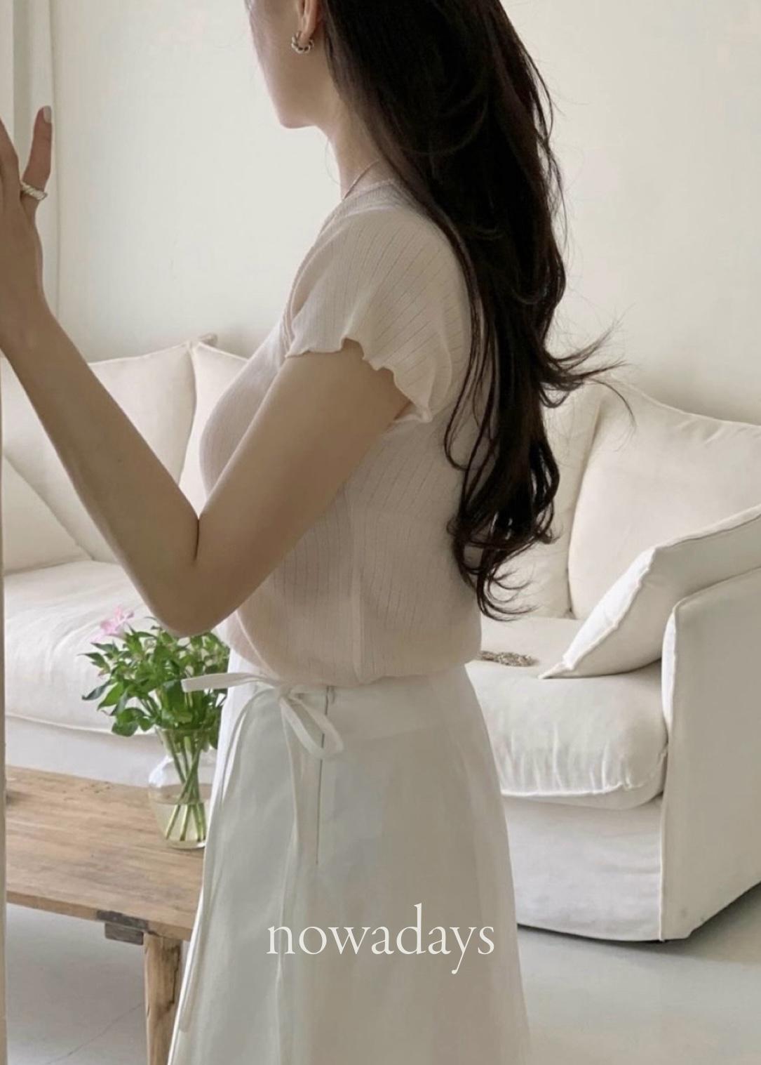 (재진행) miel 미엘 엠마 티셔츠 골지 프릴 반팔 라운드 여리핏 래글런 t (4col)