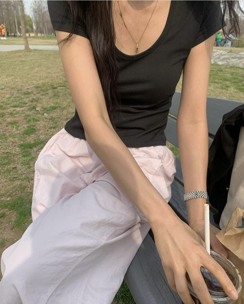 웰로우 텐션캡소매유넥티 여성티셔츠 여름반팔티
