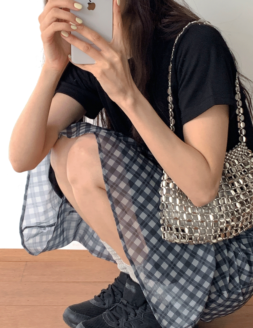 [당일출고🚀] 로시 쉬폰 밴딩 체크 미디스커트-2color
