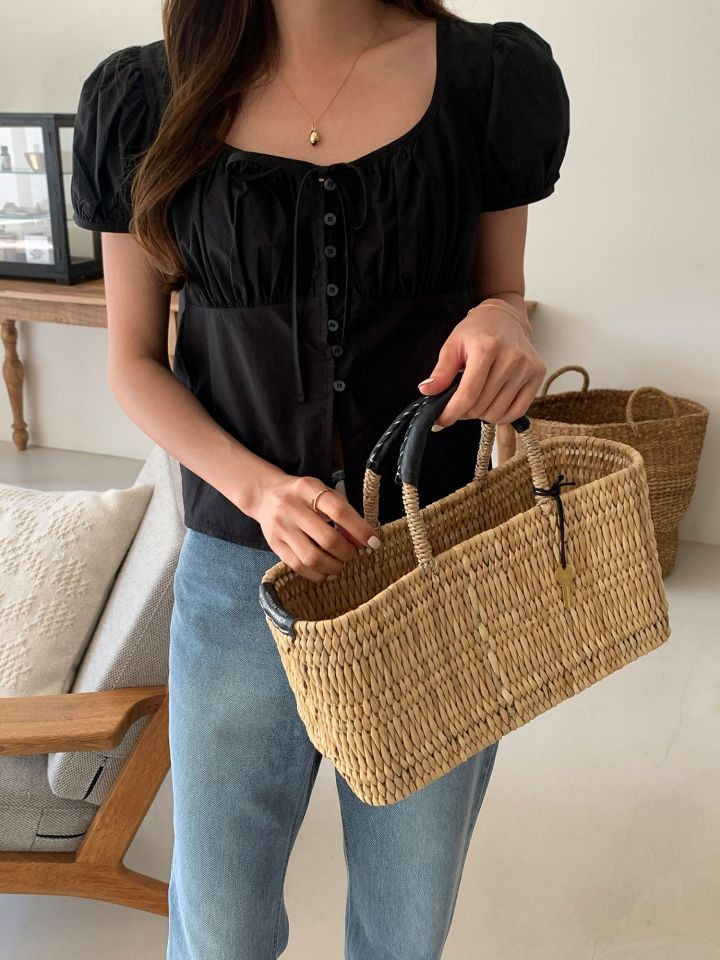 이너프 베니스블라우스 퍼프 셔링블라우스 스퀘어넥블라우스