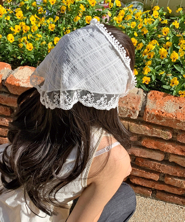 [ 당일출고 / 여리여리 해요 ] 레이스 노방 리본 헤어 무지 두건 보닛 스카프 바캉스 여름반다나