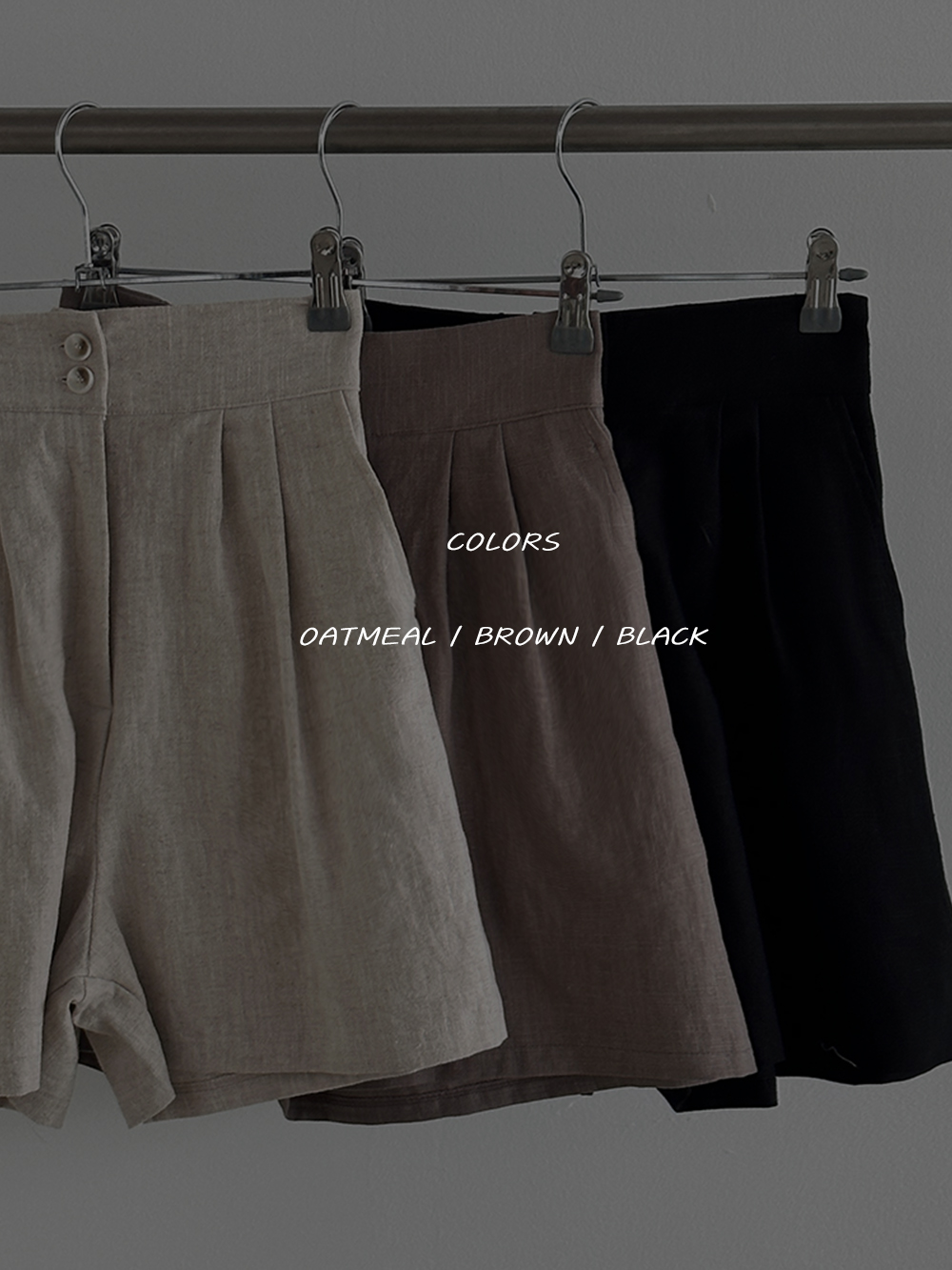 [무료배송/MADE] 투버튼 린넨 핀턱 와이드 숏팬츠