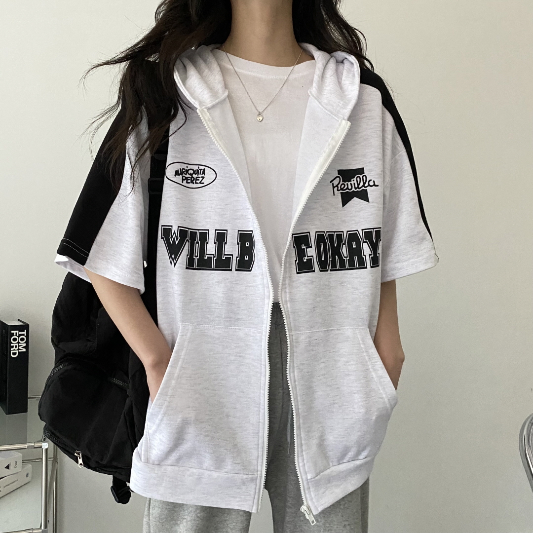 [여름아우터/빅사이즈] 데일리 오버핏 월비 레터링 반팔 후드집업 3color