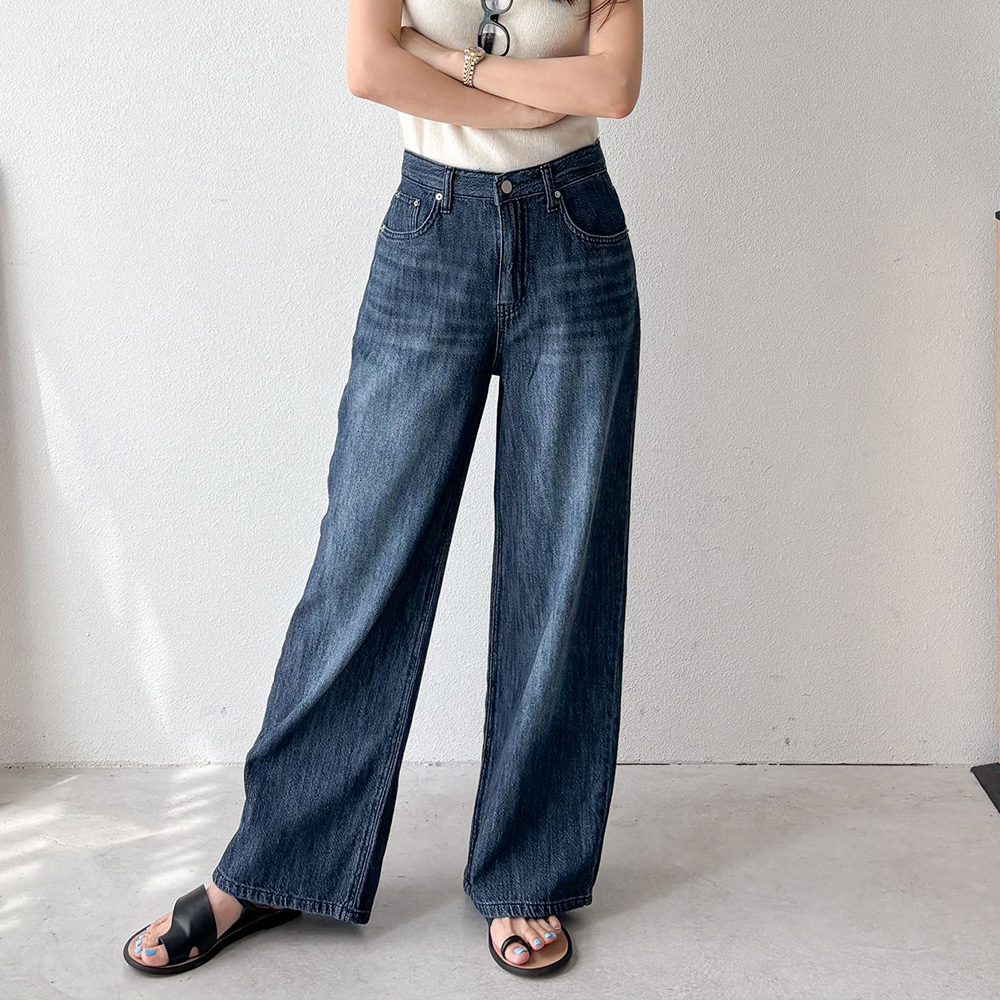 여자 썸머 쿨 하이웨스트 일자 롱와이드데님 청바지