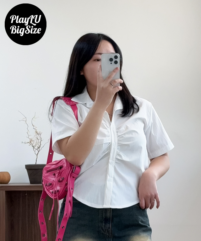 [빅사이즈 맛집~120까지💖] 데일리 여리핏 셔링 굴림 반팔 셔츠 -2color
