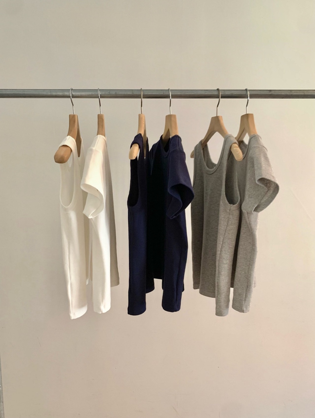 하우스 haus 90s 슬리브리스 나시 레이어드 반팔 세트 (3color)