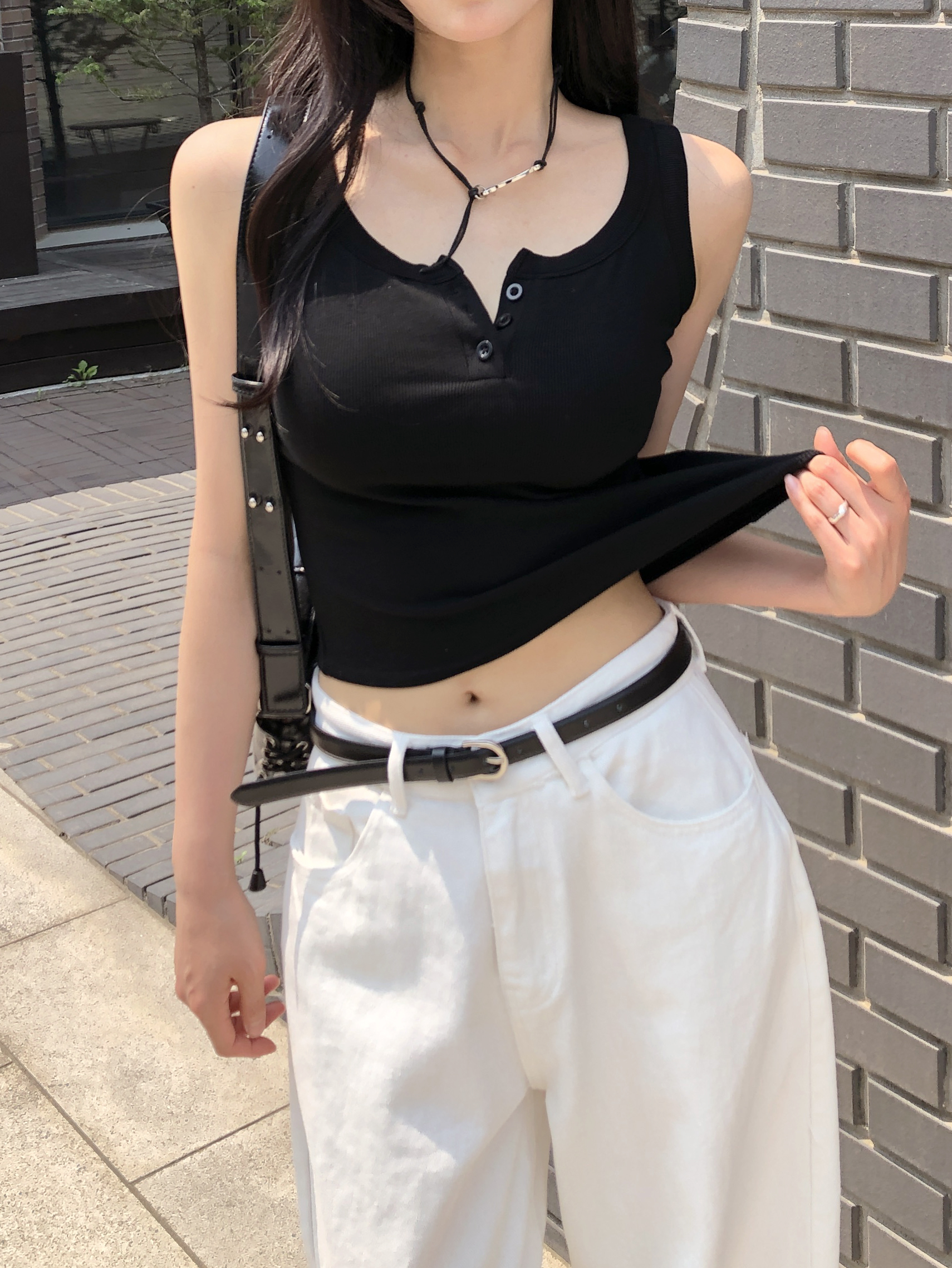 [부유방커버✨/made/롱,숏/버튼나시] 4color 쓰리버튼 y2k 스판 쫀쫀 골지 기본 나시/여름나시/썸머나시/휴가룩/휴양지나시/슬리브리스/단추나시/세미크롭나시/이너나시